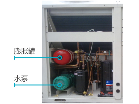 內(nèi)置水泵、膨脹罐、自動補(bǔ)水閥和安全閥,工程無需安裝膨脹水箱,大大節(jié)省安裝費用,直接連接水管即可投入運(yùn)行。