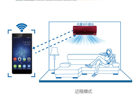 近程模式:無(wú)需家庭無(wú)線路由器,智能終端可直接連接空調(diào)進(jìn)行遙控,該模式適用于家庭近距離遙控。 |