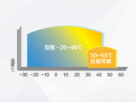 | 運(yùn)行范圍寬廣,可在環(huán)境溫度-26℃~ 46℃范圍內(nèi)一年四季全天候工作,不受陰雨等惡劣天氣影響,廣泛應(yīng)用于長江以北、華北等寒冷地區(qū)。使用范圍寬廣,水箱溫度在30 ~ 55℃內(nèi)自由設(shè)定,靈活適應(yīng)各種熱水工程。 |