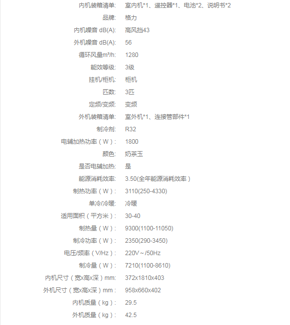 格力分體空調(diào)